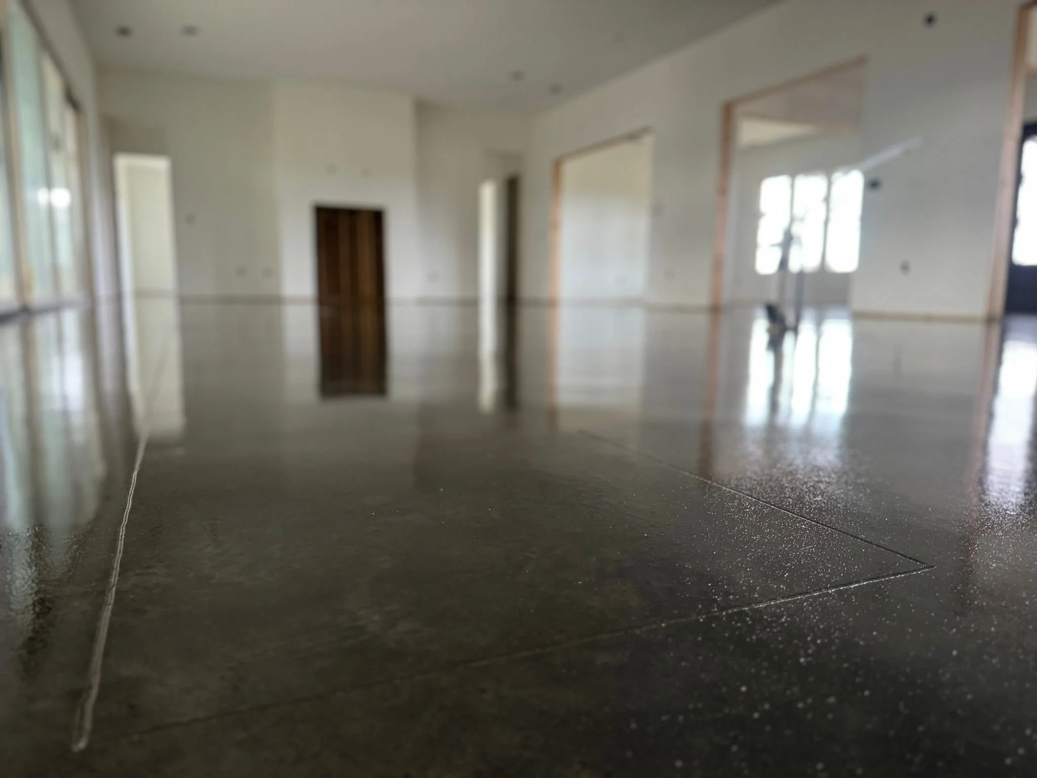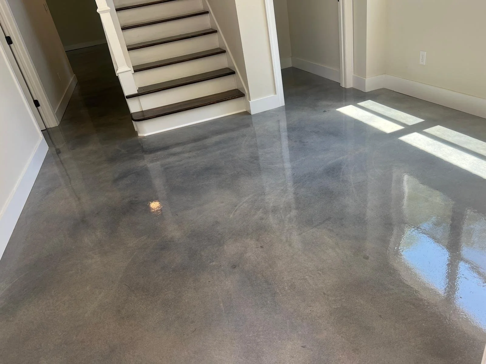 Natural concrete presents with character that will always outlast each quick fix flooring trend. This service is ideal for concrete that is new or without damage. No color is traditionally added and every slab is unique! The patterns and shades that are present once it is clean will still be visible, but sealed with beautiful high gloss or matte shine. We can also score patterns into the concrete to take your floor to the next level. Ask about Scoring Designs or Logo Scoring!